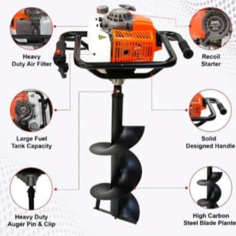 Tehokkaassa raskaassa tullessa kaulassa-joka on valmistettu korkean suorituskyvyn voimakkaaseen päivitetyllä teräskehyksellä, kestävällä vaihdelaatikolla, joka sopii yhden miehen toimintaan. Tällä 2-iskun moottorin vahvalla bensiinin maapallon aukoilla 63cc on nopea aukonopeus ja korkea hyötysuhde potholing-käytön ja muiden maatalouden tai teollisuuden aikana.